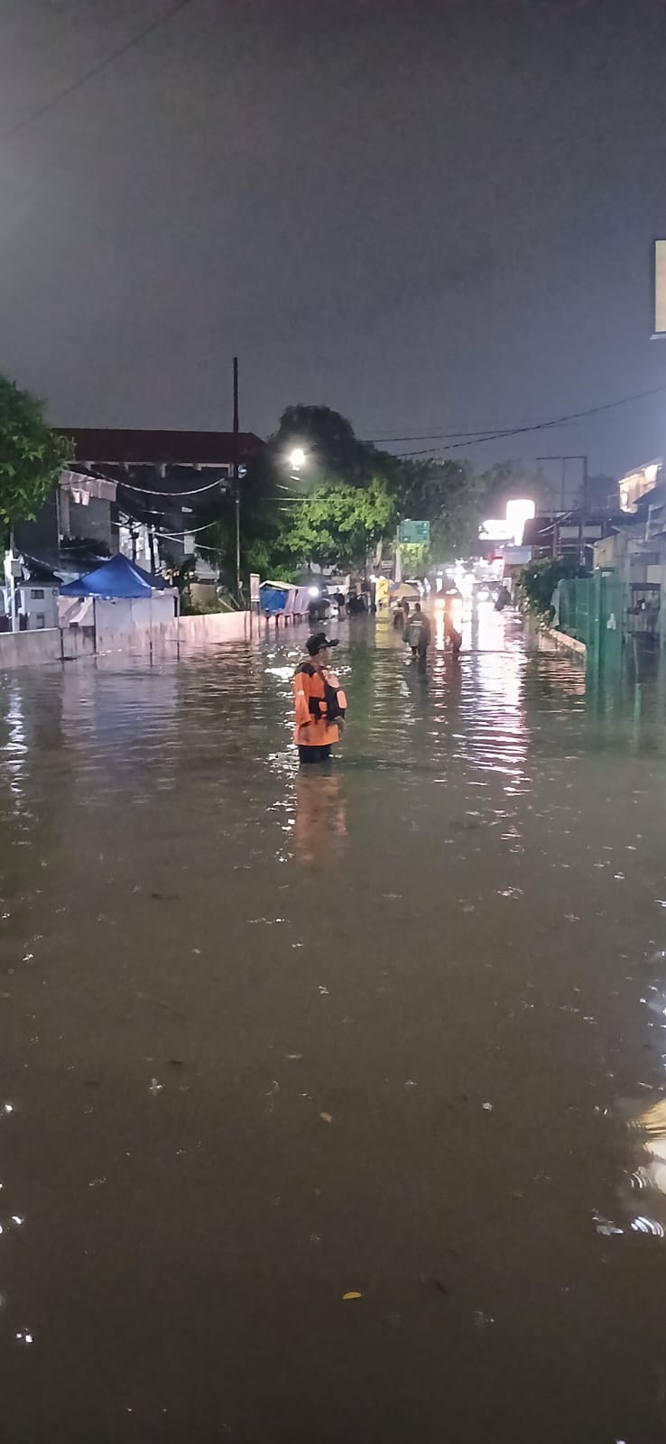 Selain permukiman, genangan juga terjadi di ruas jalan utama seperti Jalan Raya Ceger, Taman Mangu, dengan ketinggian air mencapai 30–50 cm dan hingga kini masih tergenang.
