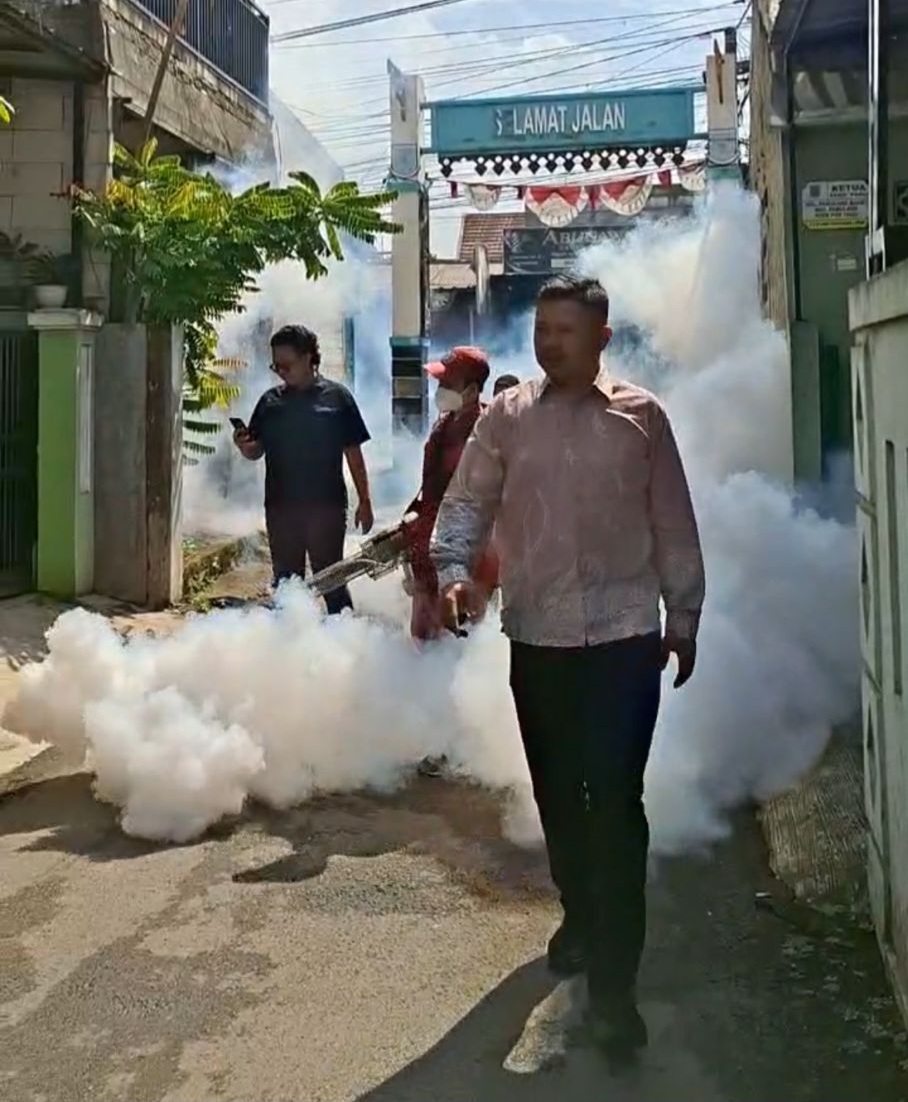 PUSTAKA KOTA.Tangsel-Pemerintah Kota Tangerang Selatan melalui Dinas Kesehatan bersama Puskesmas Pamulang, Ketua RT, serta kader Jumantik melakukan kegiatan fogging atau pengasapan di permukiman warga RT 004/RW 006, Kelurahan Pamulang Barat, Kecamatan Pamulang, Kamis (5/2/2026).