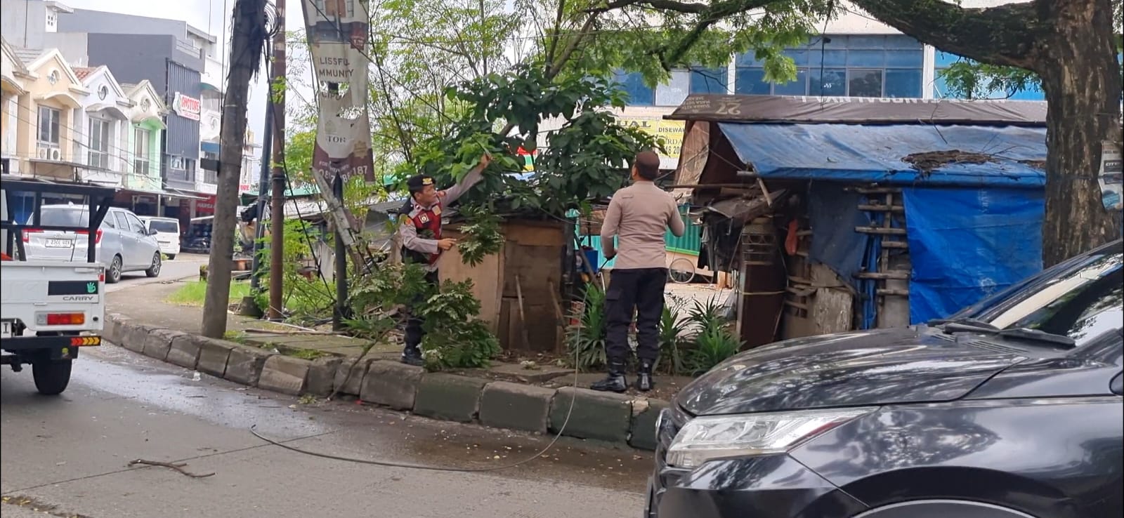 PUSTAKA KOTA,Tangsel-Personel Polsek Ciputat Timur mengevakuasi kabel yang menjuntai dan membahayakan pengguna jalan di Jalan Otista, Ciputat, Rabu (28/1/2026)