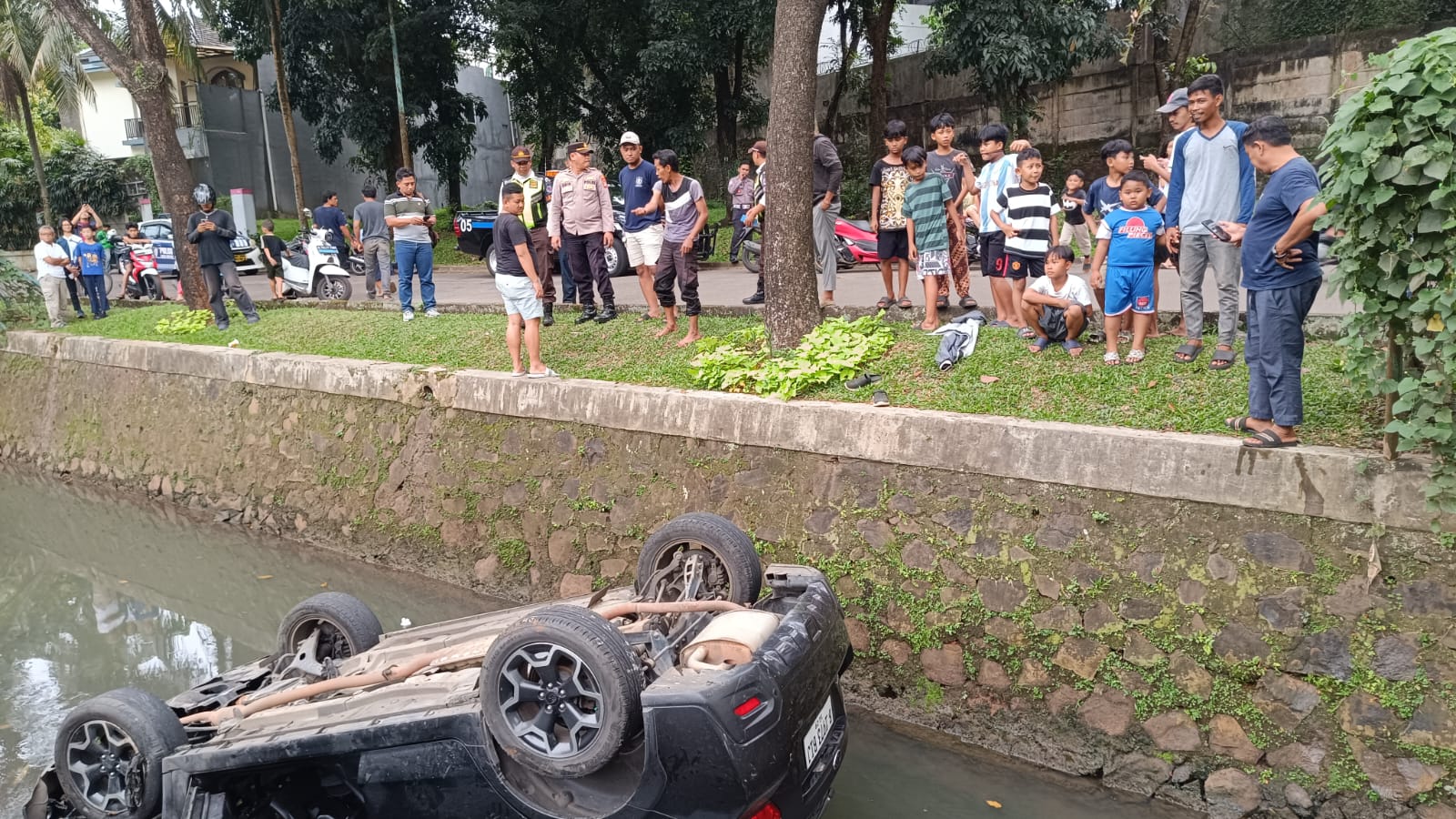 “Menurut saksi, kendaraan sudah terlihat tidak stabil sejak dari depan pos utama, lalu tiba-tiba masuk ke kali,” Jelas Udin.