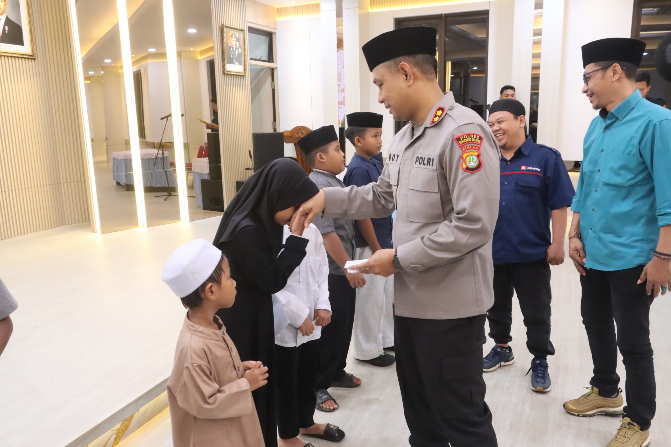 Dalam kesempatan tersebut, jajaran Polres Tangerang Selatan turut memberikan santunan kepada anak-anak yatim serta motivasi agar terus semangat dalam belajar dan meraih cita-cita.
