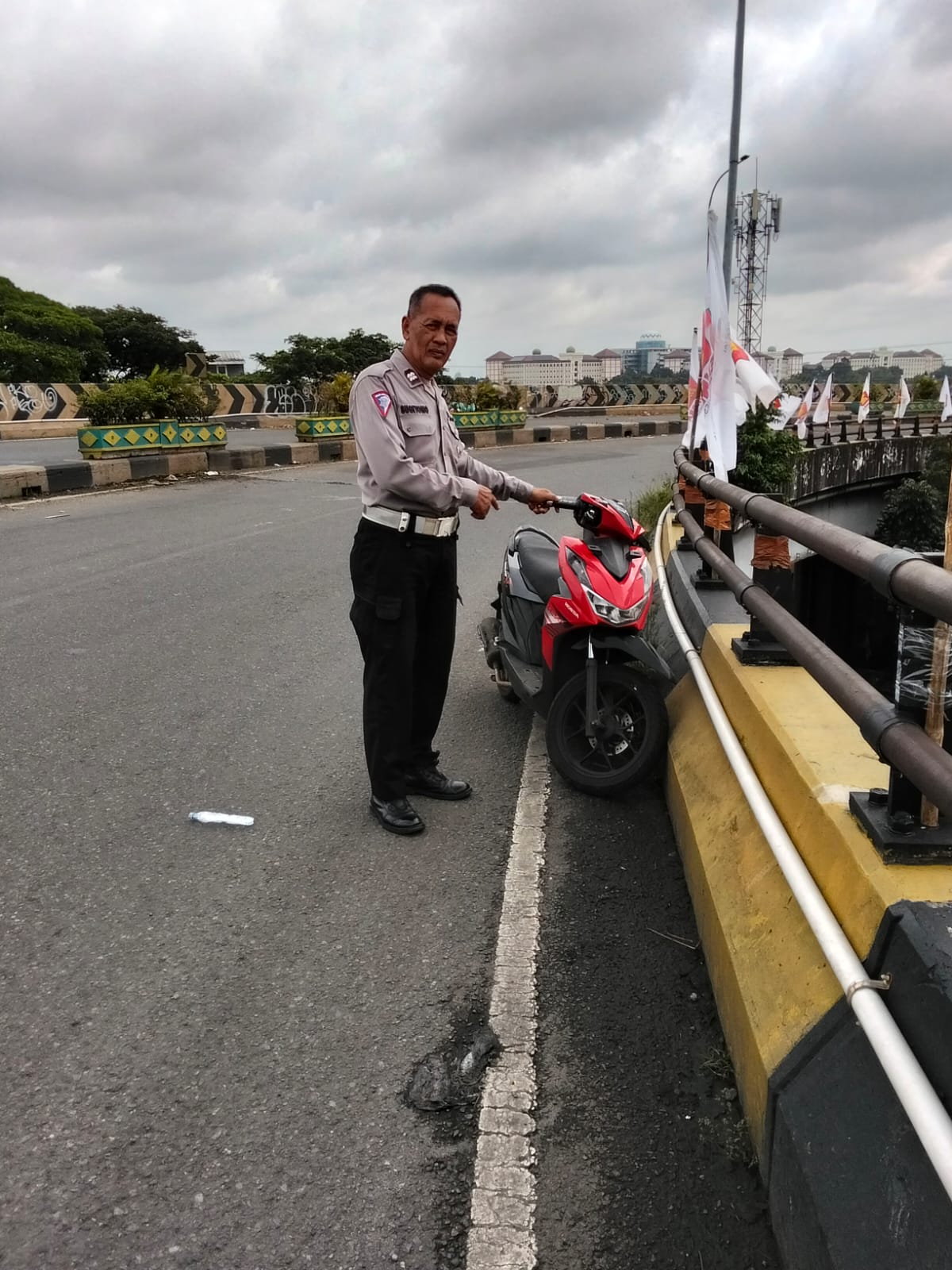 Menindaklanjuti laporan tersebut, petugas piket Unit Lantas Polsek Ciputat Timur Aiptu Sugiono dan Bripka Satria segera melakukan konfirmasi kepada pelapor dan langsung menuju lokasi kejadian. Di lokasi, petugas mendapati benar telah terjadi kecelakaan tunggal sepeda motor di Jl. Ir. H. Juanda, tepatnya di atas Fly Over Ciputat arah Bogor, Kelurahan Ciputat Timur, Kota Tangerang Selatan.