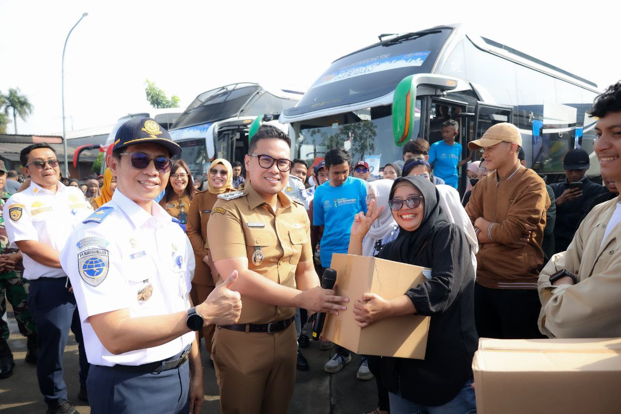 PUSTAKA KOTA, Tangsel — Wakil Wali Kota Tangerang Selatan (Tangsel), Pilar Saga Ichsan, melepas peserta program mudik gratis Angkutan Lebaran 2026 yang digelar Direktorat Jenderal Perhubungan Darat Kementerian Perhubungan di Terminal Pondok Cabe, Pamulang, Senin (16/3/2026).